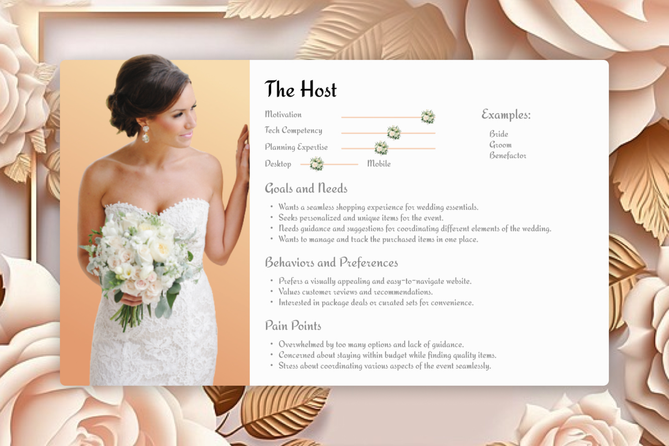 The host was our primary persona, with brides being the vast majority of hosts. They want a seamless shopping experience where they’re able to stay within their budget.