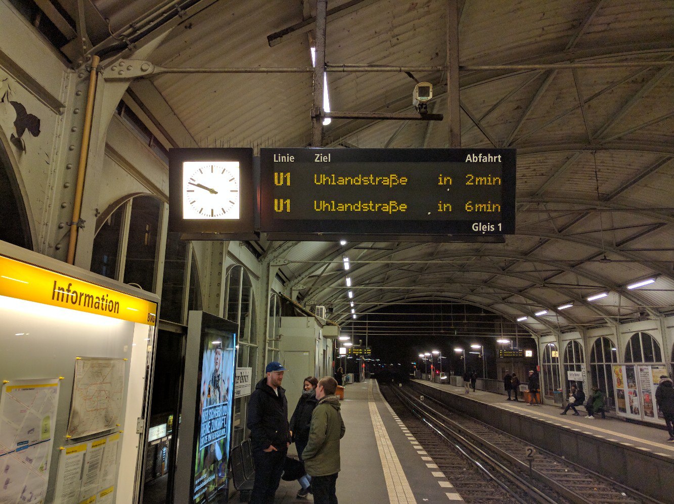 Nadya, Alex, and I met on the first day and formed Team BVG Next. That night Alex came up with an idea to create an augmented reality interface for the information panel on BVG’s subway stations. In the physical world the panel shows the line trains are running on, the direction they’re going, and the amount of time it’ll take for them to arrive at the station.